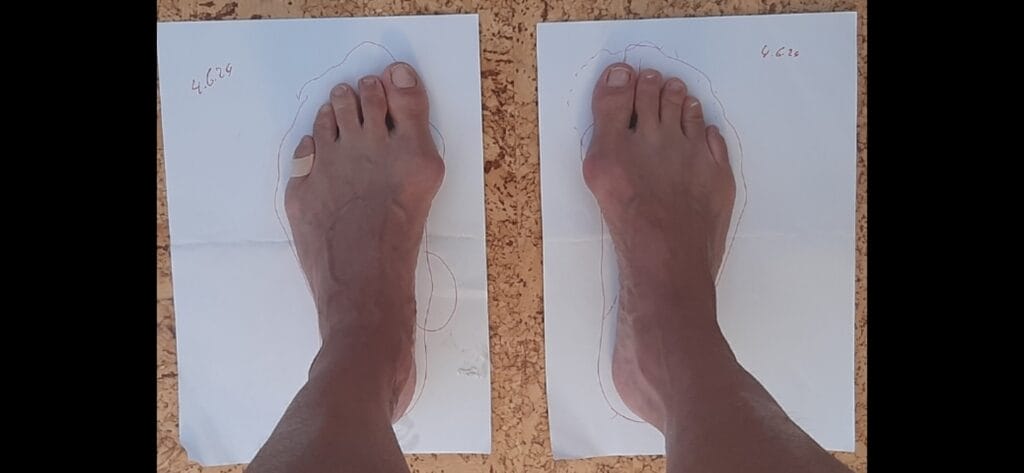 Goed, de foto die je ziet zijn mijn voeten drie maanden nadat Robin de tekening maakte van de omtrek van mijn voeten op 4 Juni 2024.